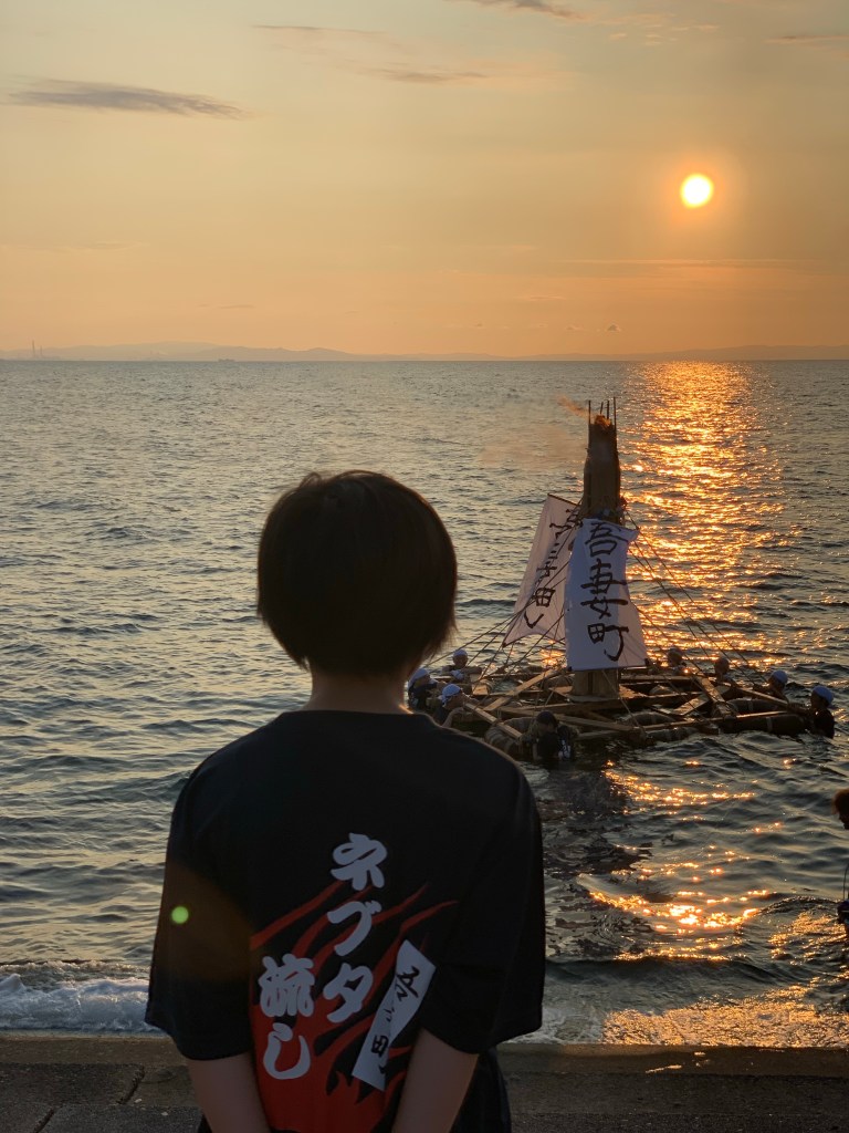 子供たちは陸からこの様子を眺め、どこの町内のねぶたが一番早く燃え尽きるか競ったり、竹が燃えはじける音に驚いたりしながら、伝統的行事を楽しんでいるようでした。