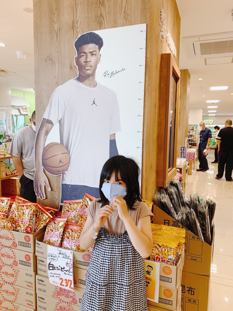 等身大の八村塁選手のパネルも設置してあり、小3になるうちの末っ子と比べると圧巻の大きさ。