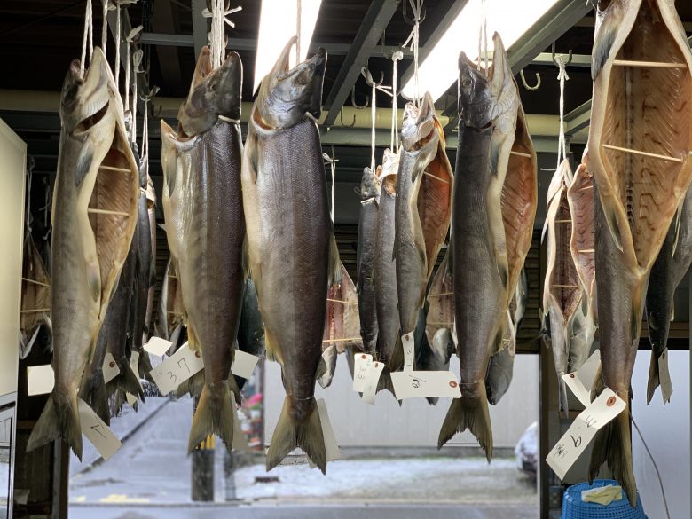 でも、新巻や塩ぶりは冷たい外気にさらすことで、良い具合に熟成されるため、このこ達にとってはうれしい寒波。