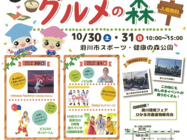 お天気の神様、ありがとう。本日と明日の2日間滑川市スポーツ・健康の森公園で開催される【キラリングルメの森】が好天の元開催されそうです。毎年、おかげさまで多くの方に3杯1,000円のカニの列に並んでいただいております。お昼