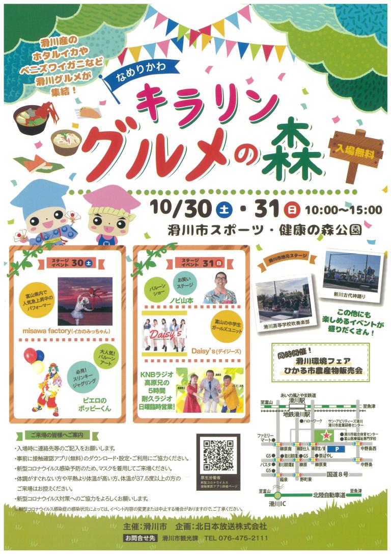 本日と明日の2日間滑川市スポーツ・健康の森公園で開催される【キラリングルメの森】が好天の元開催されそうです。