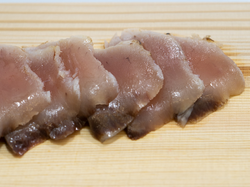 自家製の汐ぶりを薄くスライスし、炙りにしました。
